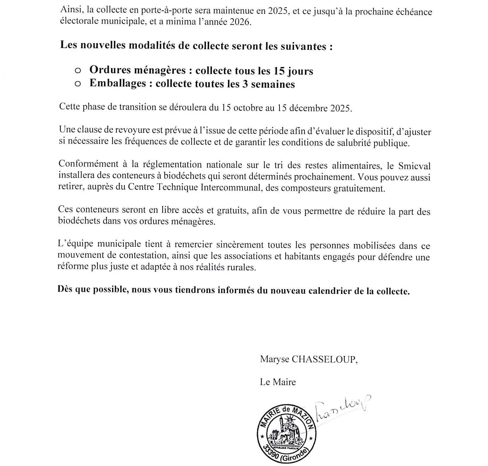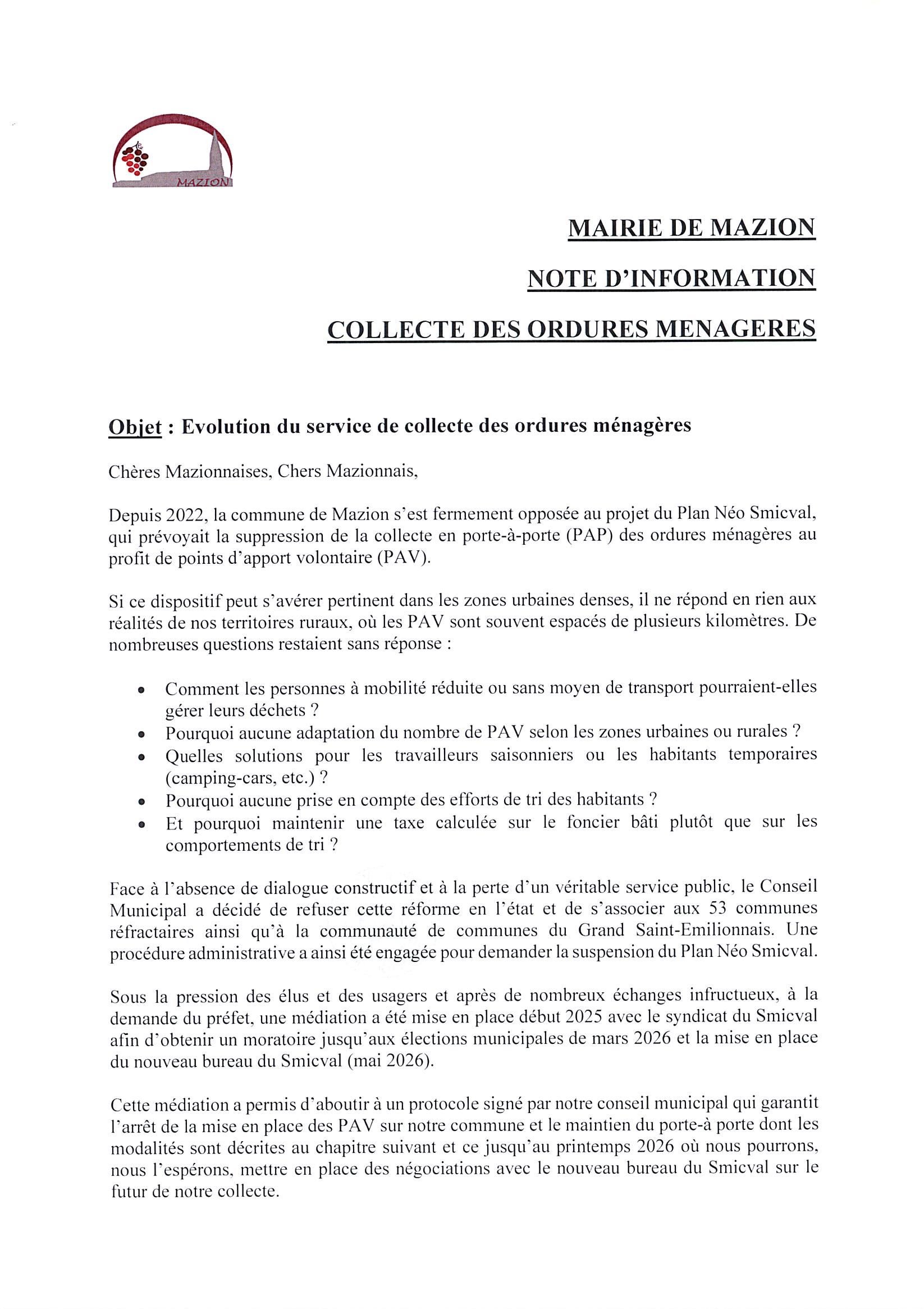 MAIRIE DE MAZION16 rue de l'Eglise33390 MAZIONTél. : 05.57.42.10.12Mail : mairie-de-mazion@orange.fr